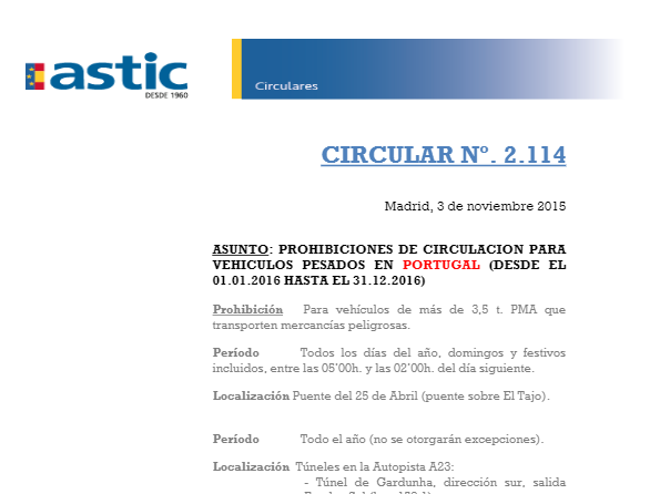 2155 Portugal. Prohibiciones circulacion 2017