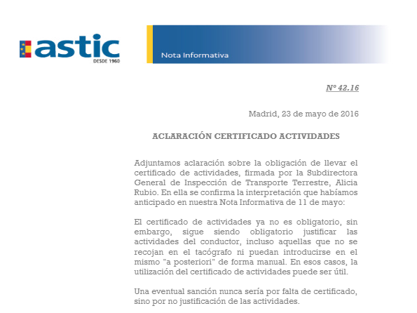 N.I. 42.16. Aclaracion certificado actividades